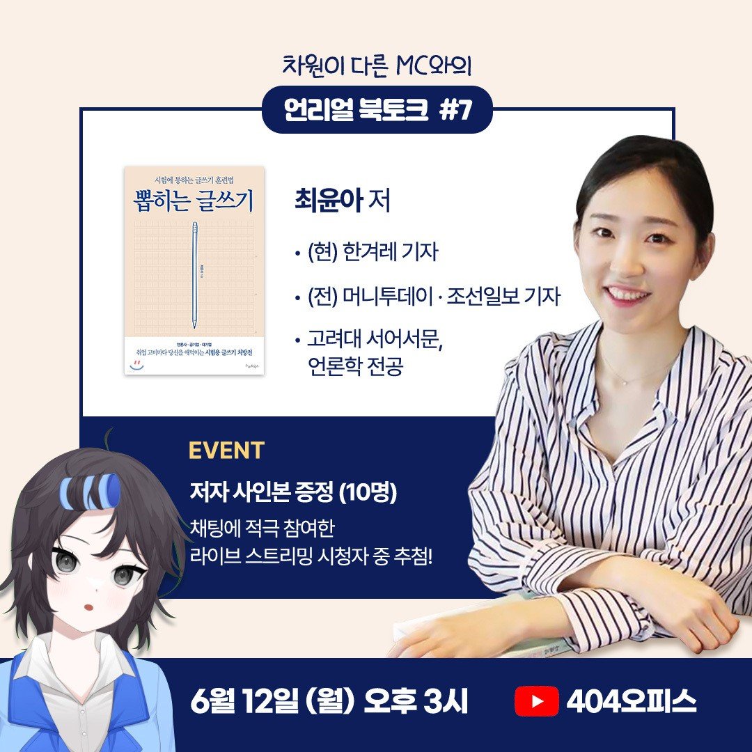 취준생·직장인을 위한, 작가님과 버추얼 유튜버의 차원을 넘나드는 언리얼 북토크 !