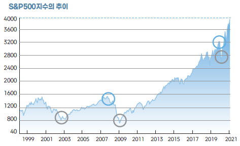 철수는 2020년 코로나19로 인한 대폭락 시점을 정확하게 예측하여 바닥에서 매수했음에도, 2008년 금융위기 폭락 직전에 고점 매수한 영수에 비하면 훨씬 비싼 가격에 주식을 산 것입니다. 또한 2000년 IT버블 붕괴 후 대폭락 시기에도 바닥 매수를 했지만 1996년에 아무 생각 없이 산 영수에 비하면 훨씬 비싼 가격에 주식을 산 꼴입니다. 게다가 일찍부터 영수가 보유하던 주식에서 뿜어져 나오는 배당금도 무시할 수 없습니다. 이 배당금만 해도 영수는 철수보다 약 7,600만원을 더 받습니다. _116쪽 <장기투자자에겐 폭락이 그리 나쁘지 않다>