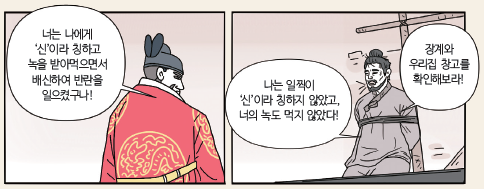 임금과 신하간의 팽팽한 논쟁이다.