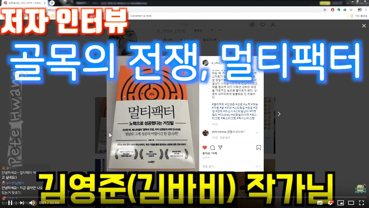 『멀티팩터―노력으로 성공했다는 거짓말』 은 채색된 성공을 다룬 『골목의 전쟁』연장선에 있으며, 성공에 대한 다른 분석을 통해 다양한 성공 담론을 다루고 있다. 이 책이 사업가, 자영업자, 직장인, 퇴사 준비생들에게 도움이 되었으면 하는 바람을 가지고 있다.