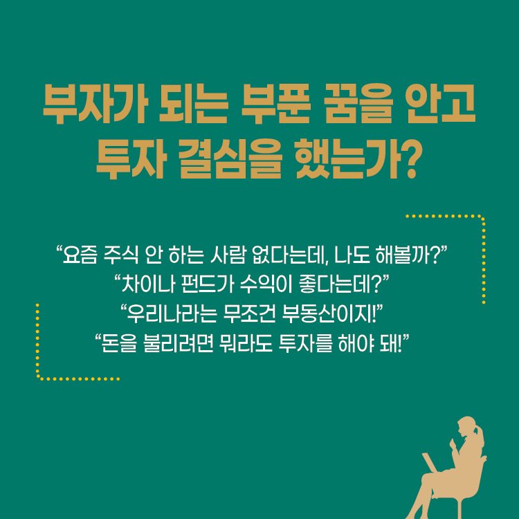 우리는 모두 저마다의 꿈을 가지고 투자 시장에 뛰어든다. 어떤 이는 지금보다 덜 쪼들리는 삶을, 어떤 이는 온전한 내 집 마련을, 어떤 이는 이른 퇴직과 경제적 자유를 위해 투자를 한다. 코로나19 사태로 투자 열풍은 더욱 거세졌다. 주린이들의 동학 개미 운동이 일어나고, 욜로(YOLO)를 노래하던 2030 세대는 영끌과 빚투를 서슴지 않는다. 월급만으로는 살기 힘든 요즘, 돈을 불리려면 뭐라도 해야 한다고 믿으며 어느 때보다 투자에 열을 올리는데, 도대체 왜 우리는 부자가 되지 못하는가?